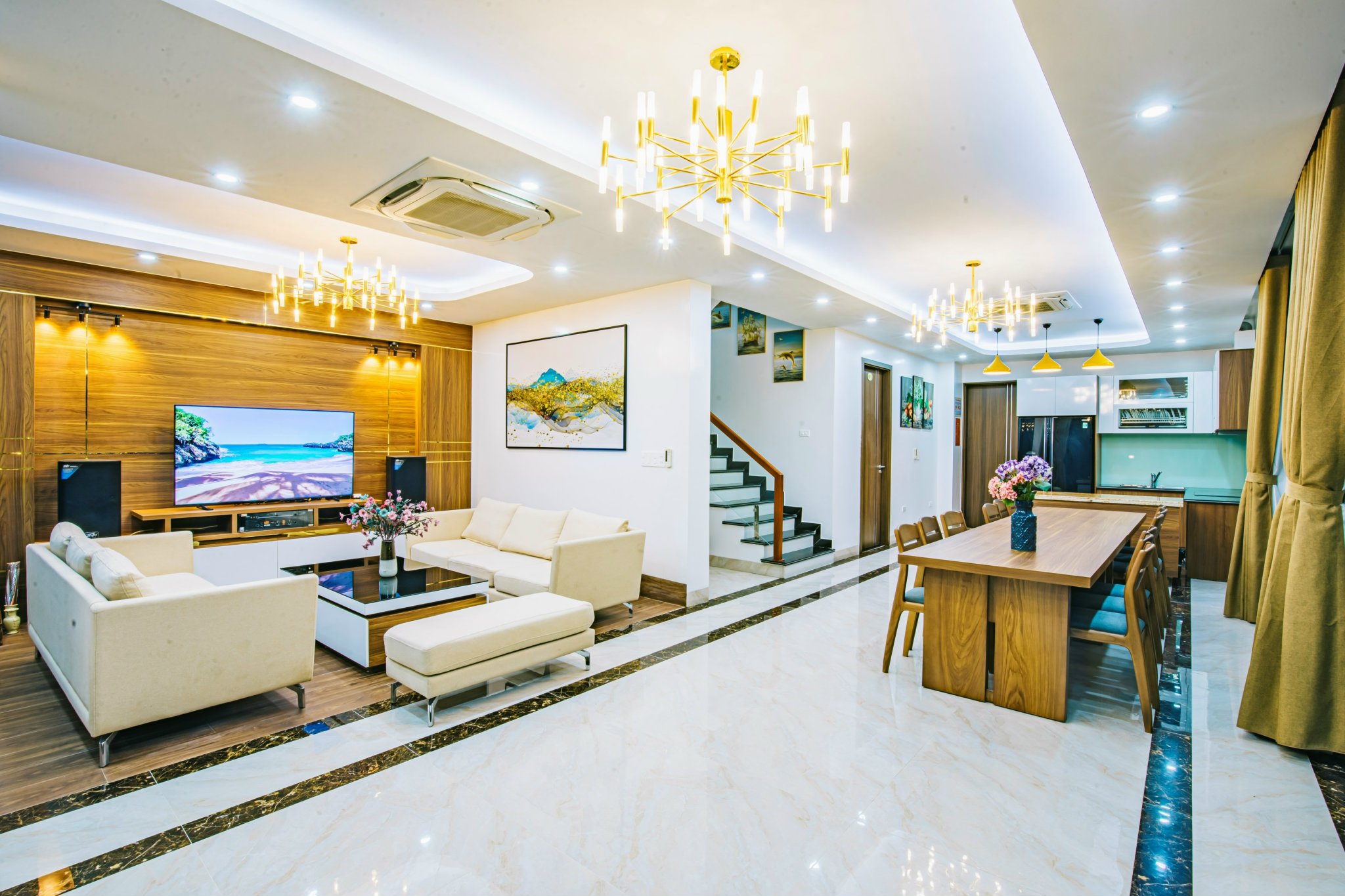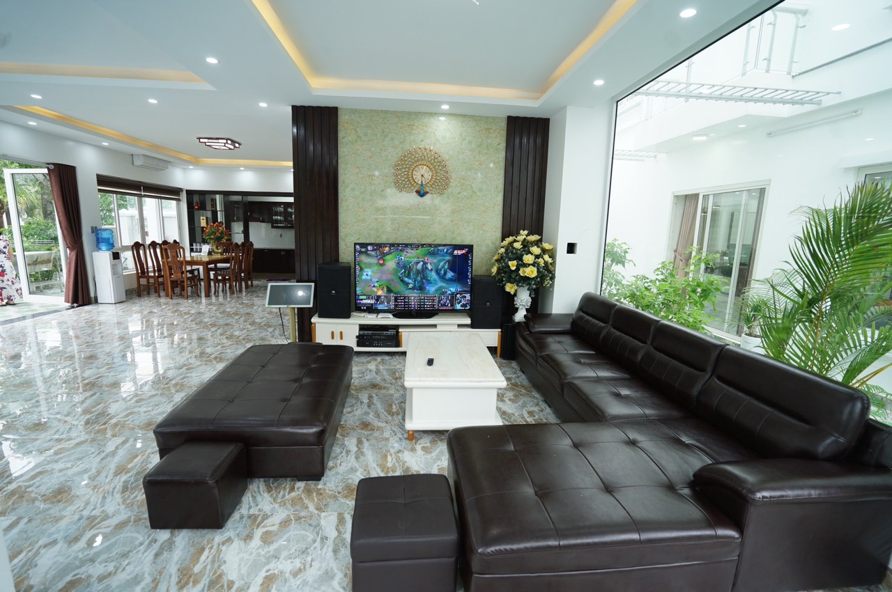 Phòng khách rộng rãi có dàn karaoke hiện đại